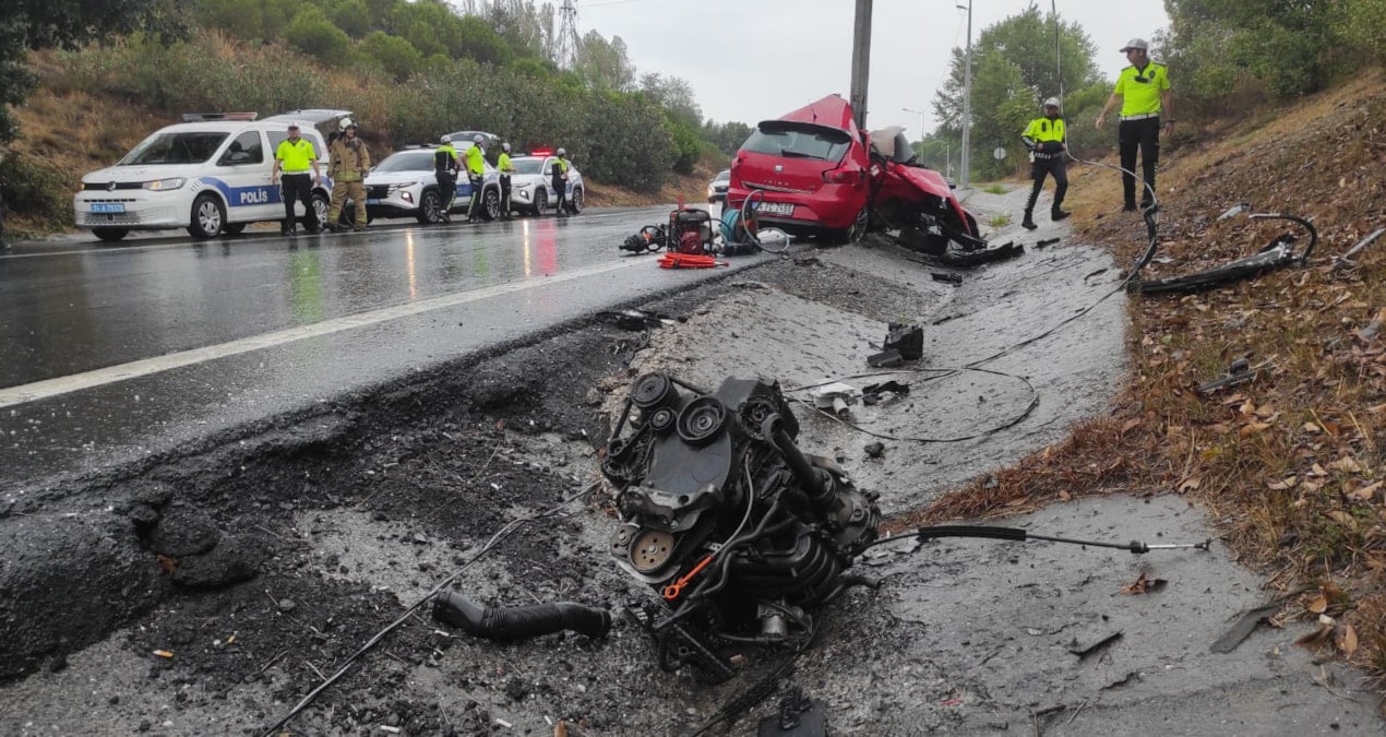 Polis ekipleri güvenlik önlemi alarak yolu trafiğe kapatırken, itfaiye ekipleri otomobilde sıkışan sürücüyü kurtarmak için çalışma başlattı. Sağlık ekipleri yaptıkları ilk incelemede sürücünün olay yerinde hayatını kaybettiğini belirledi. Kazada otomobilin motor kısmı araçtan ayrılarak yola savruldu.