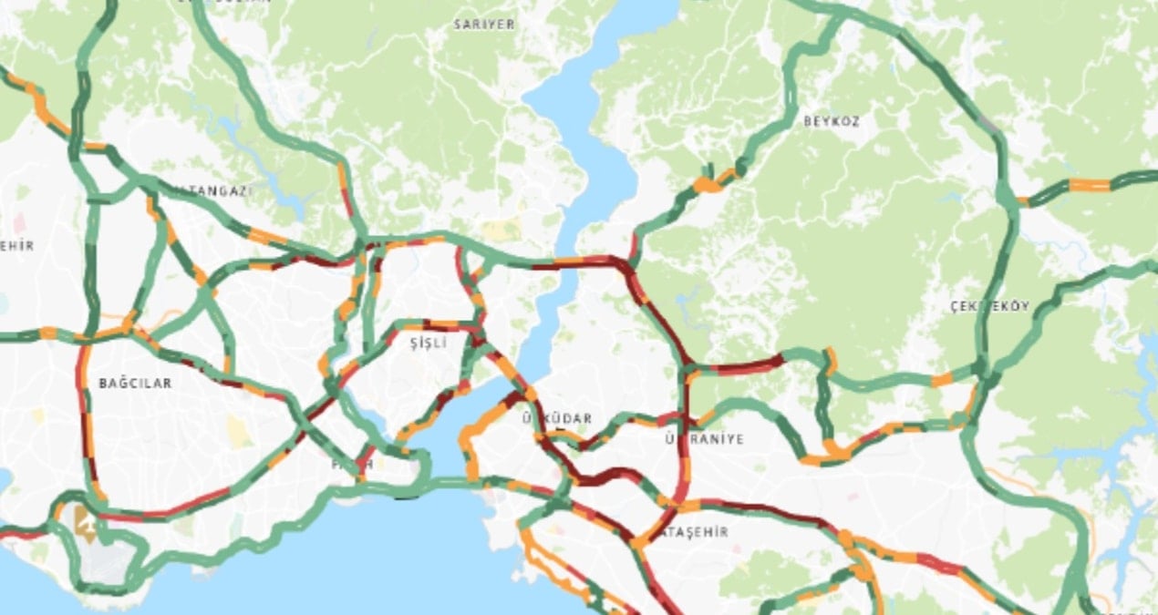 Anadolu Yakası’ndan Avrupa Yakası’na geçiş noktalarında ve ana arterlerde belirgin bir yoğunluk gözlemleniyor. Kartal ile Maltepe arasında başlayan trafik yoğunluğu, Avrasya Tüneli girişine kadar kesintisiz devam ediyor. Sultanbeyli mevkisinde yoğunlaşan araç trafiği, 15 Temmuz Şehitler Köprüsü ve Fatih Sultan Mehmet Köprüsü (FSM) katılımlarına kadar sürüyor. Köprü trafiği E-5 yönünde Ataşehir bağlantısına kadar uzanıyor.